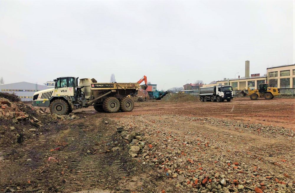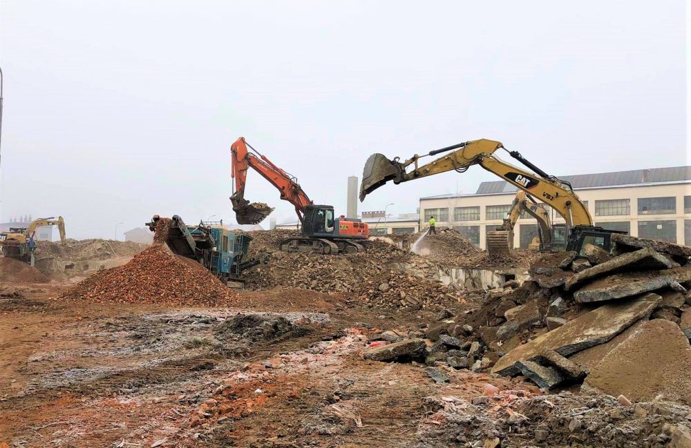 | Rozsah stavby: | Demolice budov včetně jejich podzemních částí, terénní úpravy, vytřídění odpadů a materiálů, odvoz odpadu na skládku, rekultivace terénu, drcení cihel, likvidace kovového odpadu. |