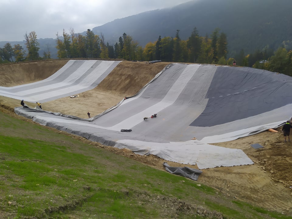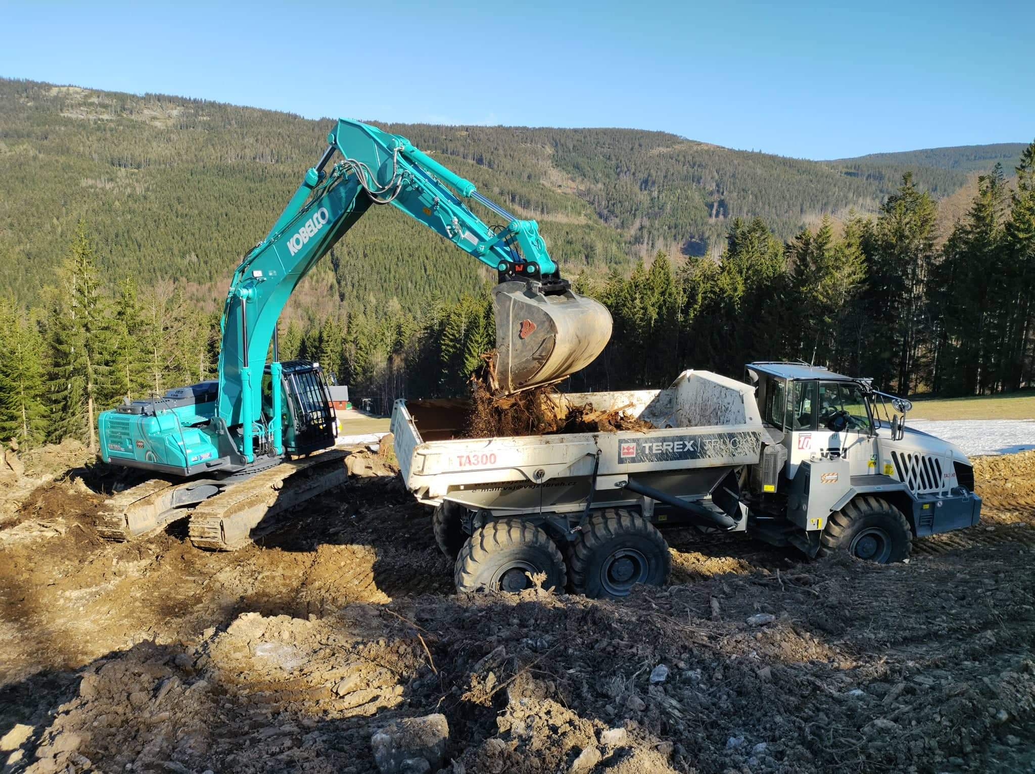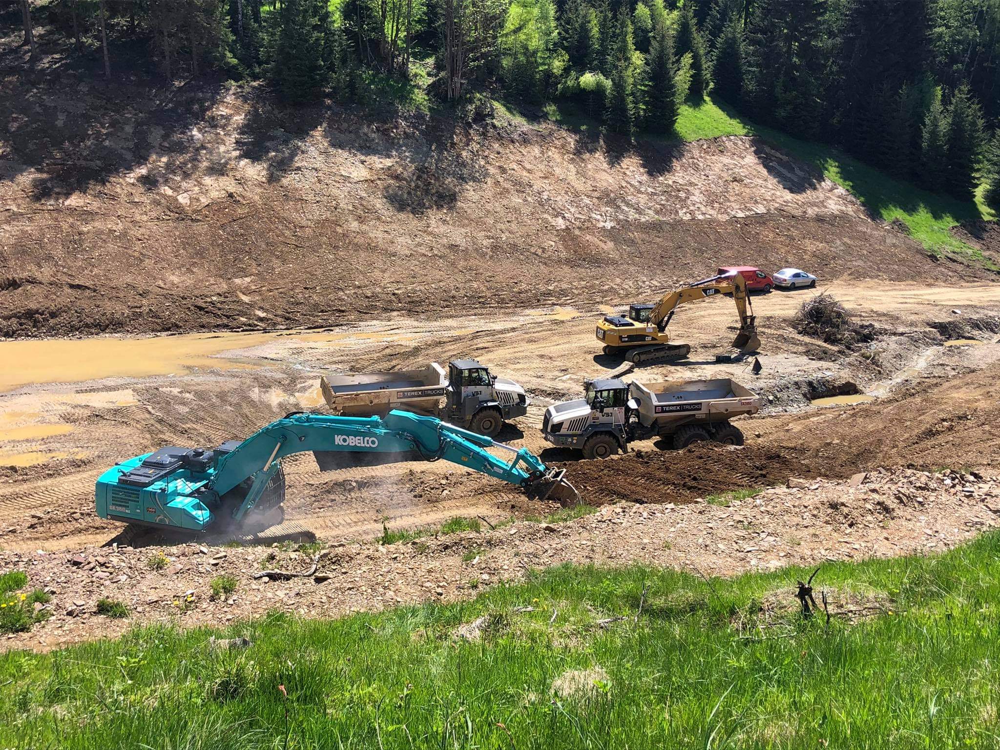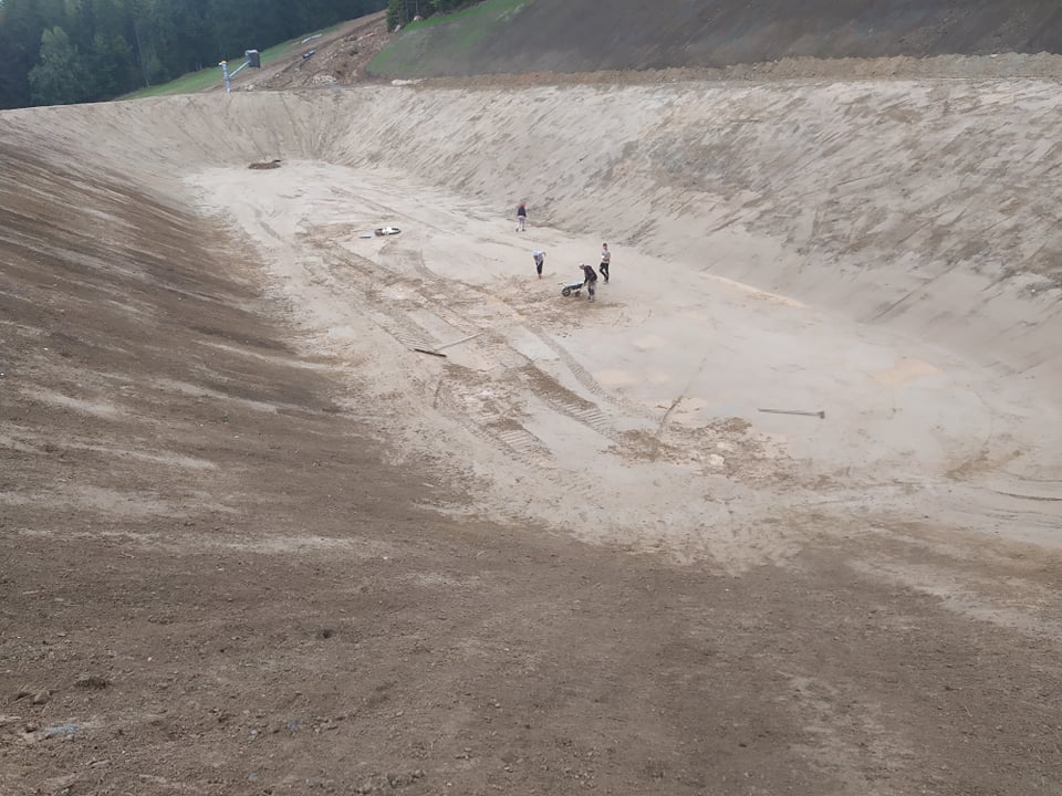 | Rozsah stavby: | Hrubé terénní úpravy (těžba zeminy svahu a přesun v tělese hráze), tvarování jezera, vytvoření hráze a hutnění hráze, odkop, svahování, převoz zeminy do hráze, stavební práce - objekt jímání, odtoku a kanalizace; pokládka fólie EPDM, závěrečný osev |